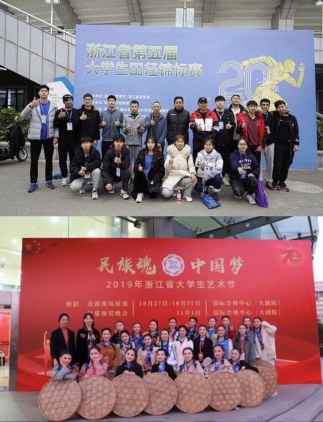 近两年,学院公共艺术与体育教育团队在浙江省大学生艺术节比赛中获得省级荣誉11项,其中金奖1项,组织优秀奖1项;在浙江省第十五届大学生运动会田径比赛中团体总分排名独立学院第二,获得省级奖项20余项;在与浙江大学、复旦大学等高校代表队同台竞技的长三角之心”漾舟精英公开赛中获得名校组200米直道、四人龙板竞速赛两项团体冠军;在庆祝建院20年之际,成功举办校园迎新马拉松赛,参赛师生达1200多人,社会各界反映良好影响力大。